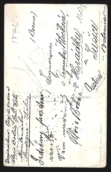 Personenbezogene Daten auf der Rückseite der Karte wurden durch blauen Textmarker unkenntlich gemacht. Die blauen Stellen sind auf die Vorderseite durchgeweicht und wirken sich negativ auf das Postkartenfoto aus