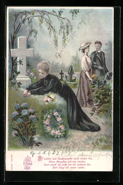 AK junge Frau am Elterngrab