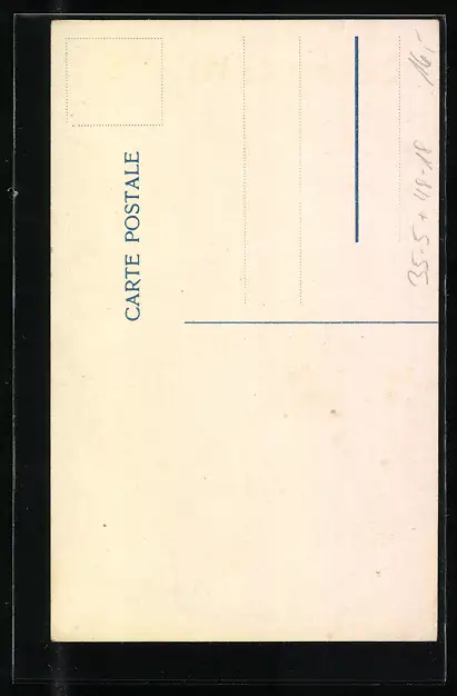 Personenbezogene Daten auf der Rückseite der Karte wurden durch blauen Textmarker unkenntlich gemacht. Die blauen Stellen sind auf die Vorderseite durchgeweicht und wirken sich negativ auf das Postkartenfoto aus