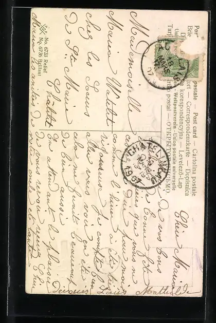 gelaufen 1907, Briefmarke entfernt, guter Zustand