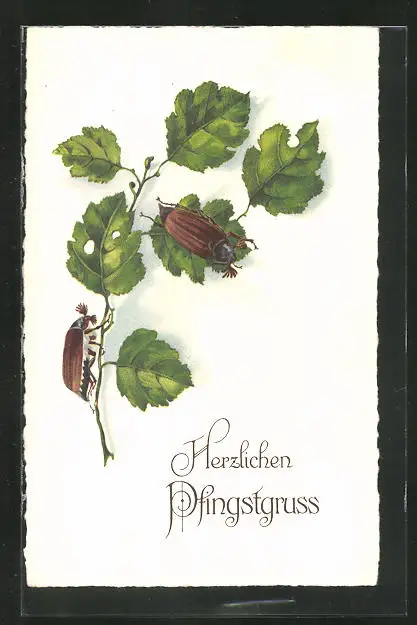 AK krabbelnde Maikäfer auf einem Blätterzweig