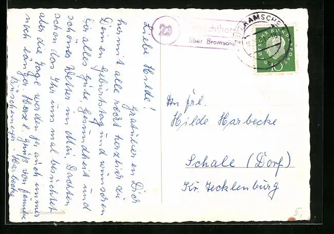 AK mit Landpoststempel Schlichthorst über Bramsche