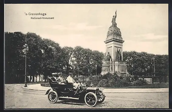 AK `s-Gravenhage, Auto, Ausflügler in einem KFZ am National-Monument