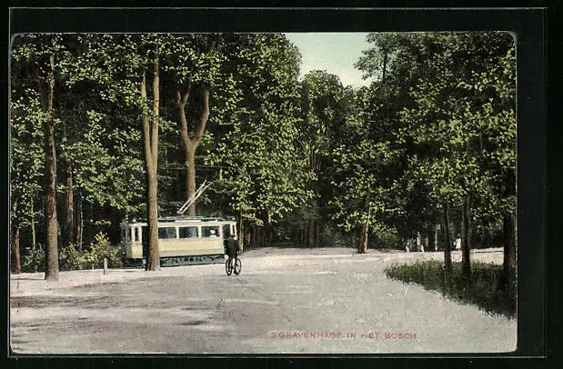 AK `s Gravenhage, In het Bosch, Strassenbahn