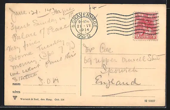 alte Ansichtskarte, gelaufen 1914, Eckknick li. oben, guter Zustand