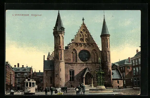 AK `s Gravenhage, Ridderzaal, Strassenbahn