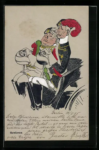 AK studentische Szene, Senioren, Herren in Uniform sitzen in Kutsche