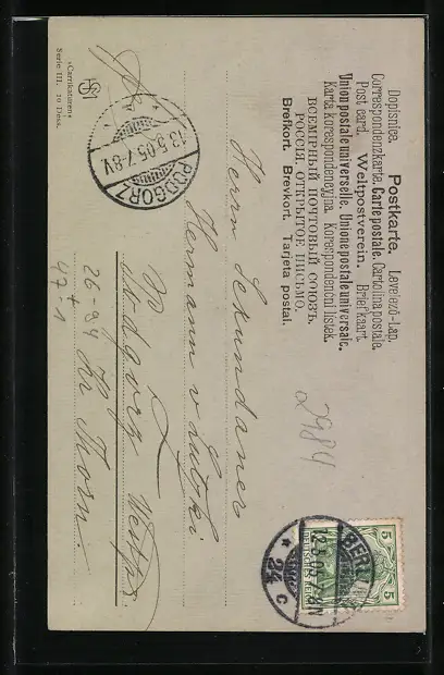 alte Ansichtskarte, gelaufen 1905, guter Zustand