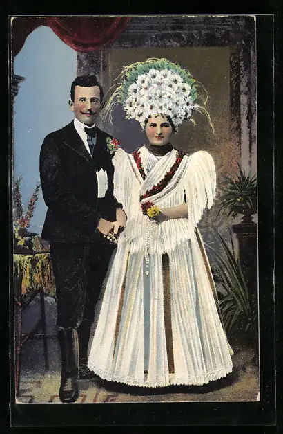 AK ungarisches Brautpaar in traditionellem Hochzeitsgewand