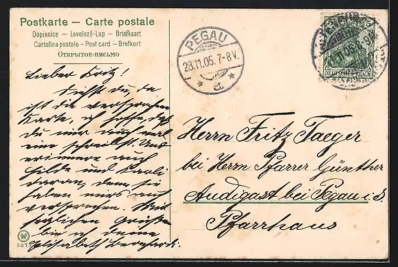 alte Ansichtskarte, gelaufen 1905, guter Zustand