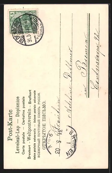 alte Ansichtskarte, gelaufen 1903, Stempelspur, guter Zustand