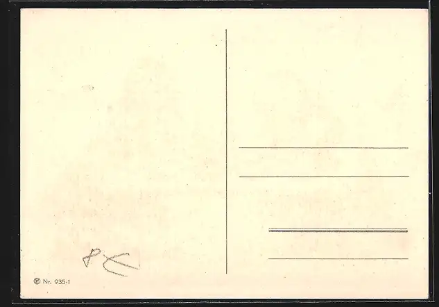 Personenbezogene Daten auf der Rückseite der Karte wurden durch blauen Textmarker unkenntlich gemacht. Die blauen Stellen sind auf die Vorderseite durchgeweicht und wirken sich negativ auf das Postkartenfoto aus