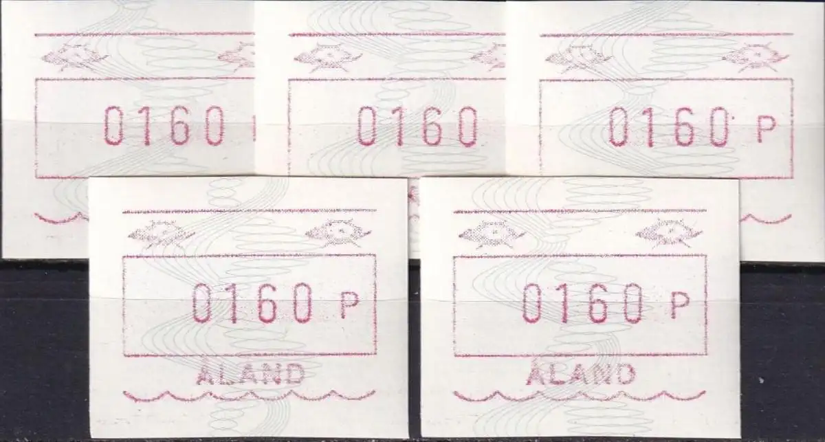 ALAND 1990 Mi-Nr. ATM 4 5 Stück Automatenmarke ** MNH