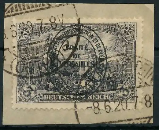 3 Mark Wert aus der Aufdruckausgabe Allenstein auf den Freimarken des deutschen Reiches (Germania 1916/1918) - Aufdruck Hochoval