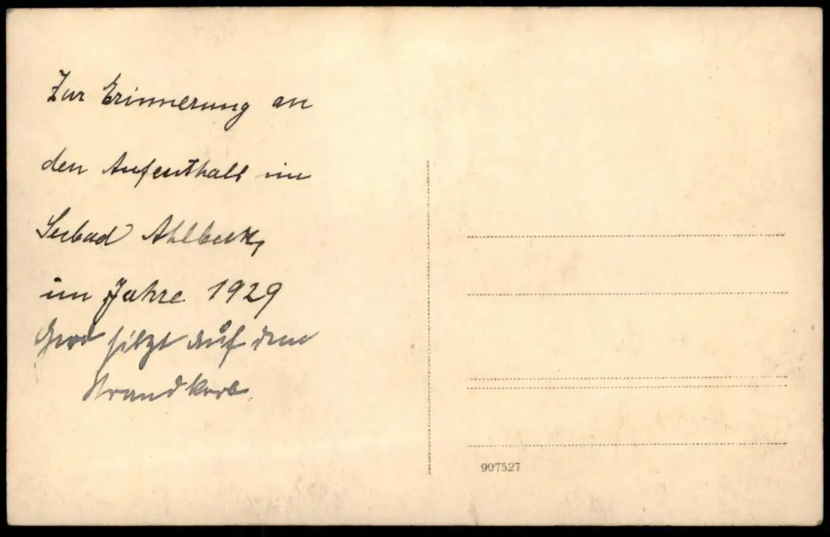 ALTE FOTO POSTKARTE ZUR ERINNERUNG AN DEN AUFENTHALT IM SEEBAD AHLBECK IM JAHRE 1929