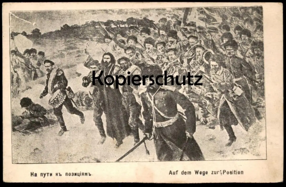 ALTE KÜNSTLER POSTKARTE AUF DEM WEGE ZUR POSITION RUSSISCHE SOLDATEN ARMEE soldiers Russia а́рмия postcard cpa
