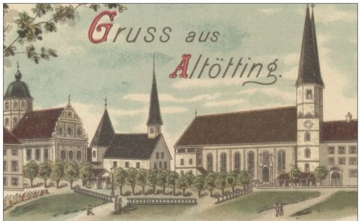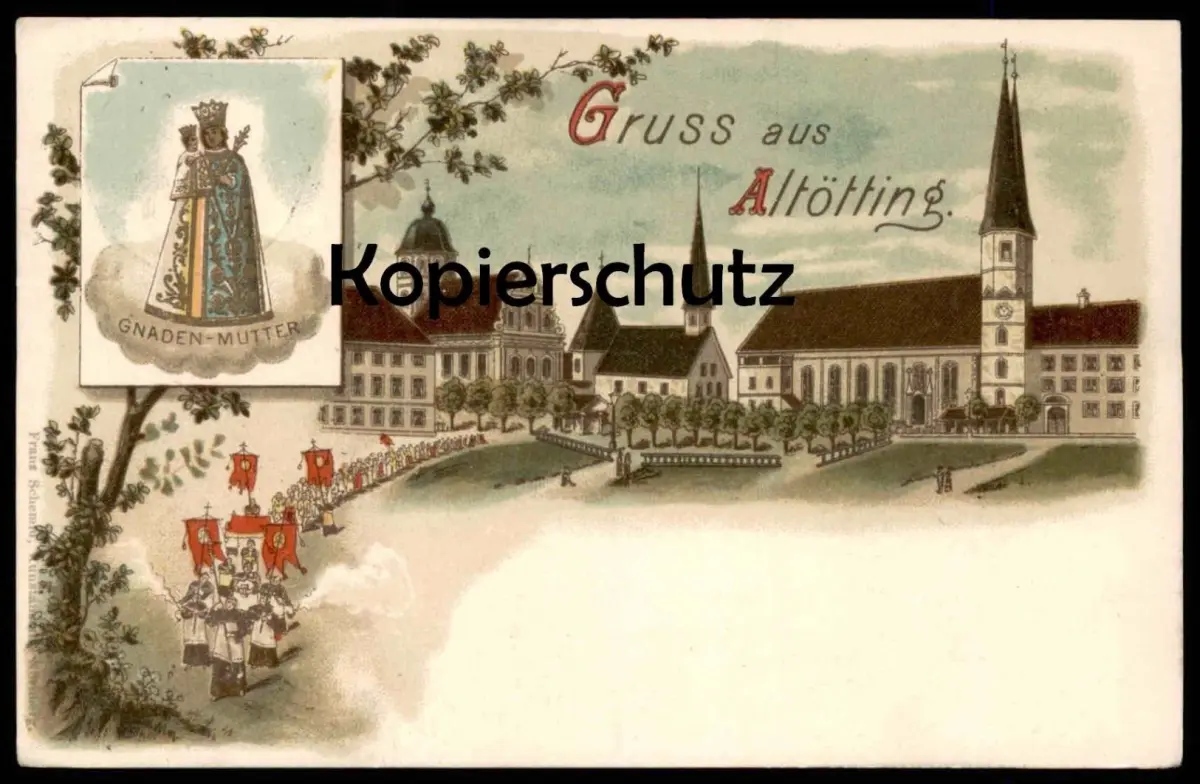 ALTE LITHO-POSTKARTE GRUSS AUS ALTÖTTING BAYERN GNADEN-MUTTER PROZESSION