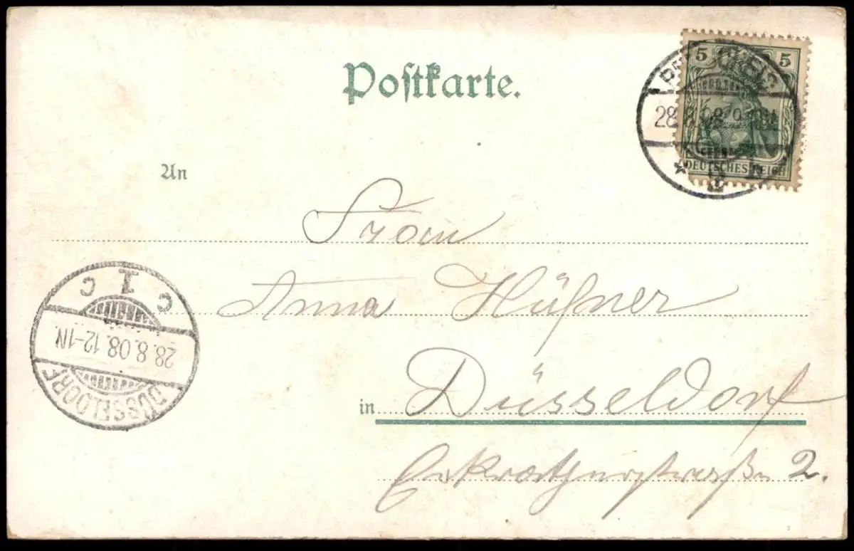 Gelaufen: 28.08.1908 mit Stempel Remscheid nach DüsseldorfErhaltung (s. Scan): gut - sehr gut / 915374