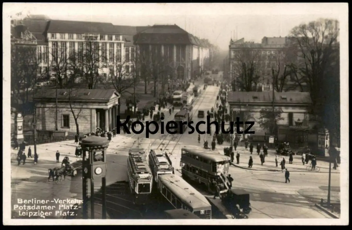 ALTE POSTKARTE BERLINER VERKEHR POTSDAMER PLATZ LEIPZIGER PLATZ BERLIN Tram Tramway Strassenbahn Bus traffic AK cpa