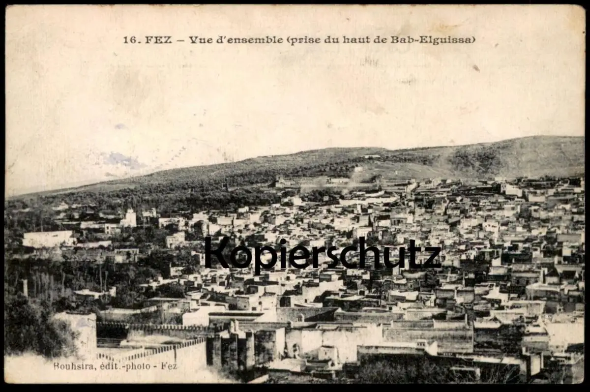 ALTE POSTKARTE FEZ VUE D'ENSEMBLE PRISE DU HAUT DE BAB-ELGUISSA Stempel Hopital Auvert de Fez Maroc Marokko cpa AK