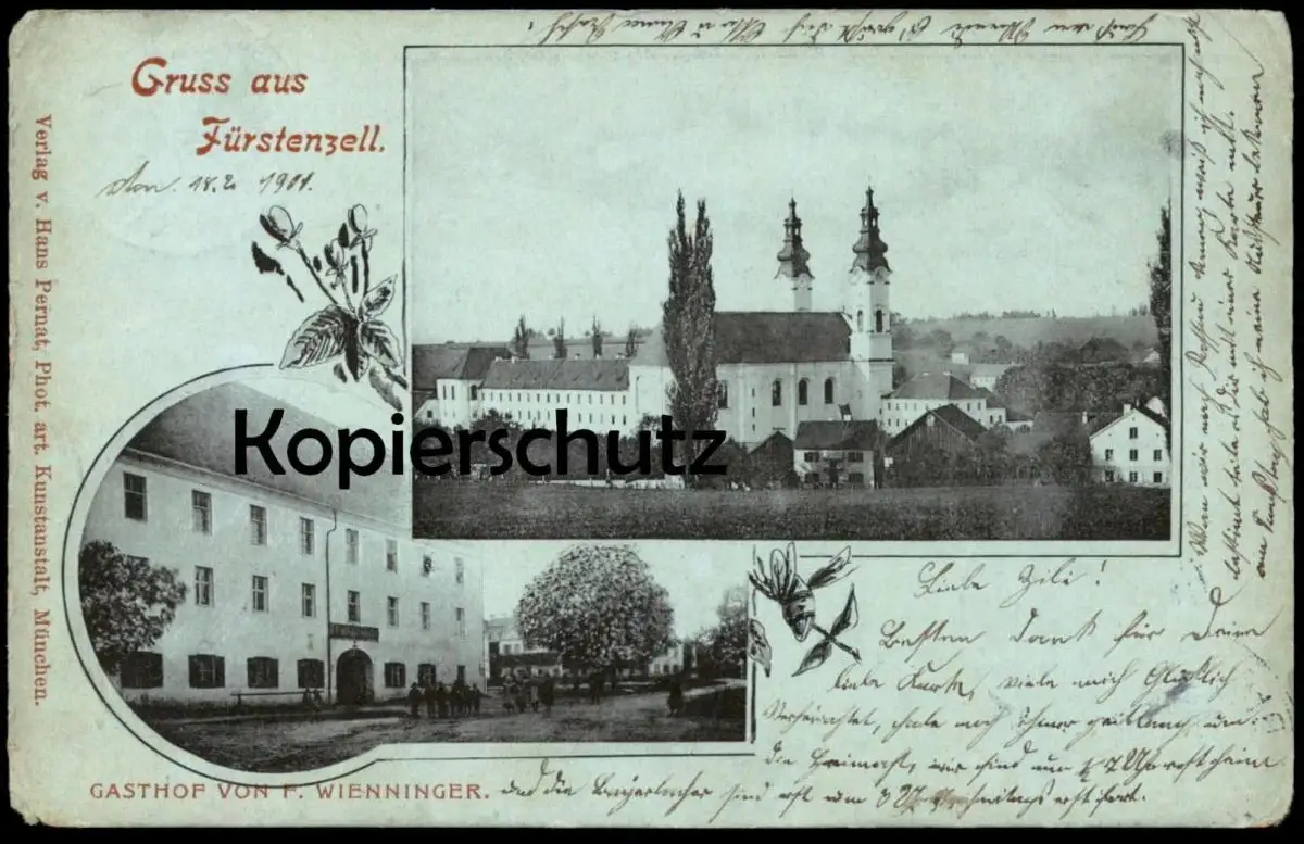 ALTE POSTKARTE GRUSS AUS FÜRSTENZELL GASTHOF VON F. WIENNINGERVerlag: Hans Pernat, München