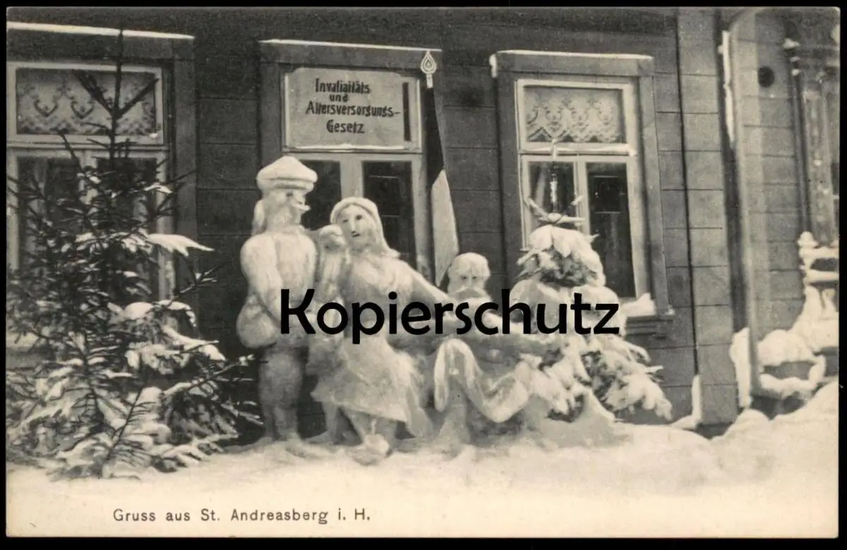 ALTE POSTKARTE GRUSS AUS ST. ANDREASBERG IM HARZ SCHNEEMANN RENTE UNFALL Schneefiguren Altersversorgungsgesetz postcard