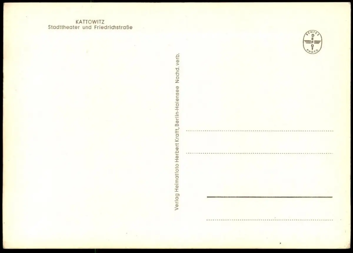 ALTE POSTKARTE KATTOWITZ STADTTHEATER & FRIEDRICHSTRASSE STRASSENBAHN BUSVerlag: Heimatfoto Herbert Krafft, Berlin-Halensee