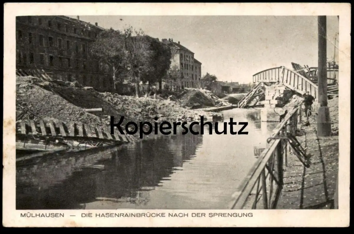ALTE POSTKARTE MÜLHAUSEN HASENRAINBRÜCKE NACH DER SPRENGUNG 1940 WWII MULHOUSE ALSACE ELSASS destruction Feldpost cpa