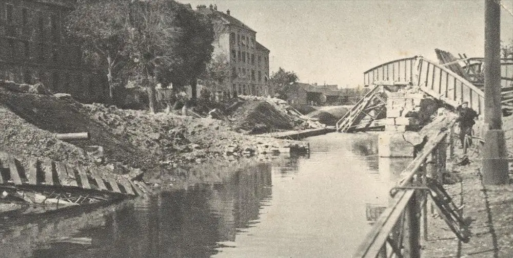 ALTE POSTKARTE MÜLHAUSEN DIE HASENRAINBRÜCKE NACH DER SPRENGUNGVerlag: Braun & Co., Mülhausen