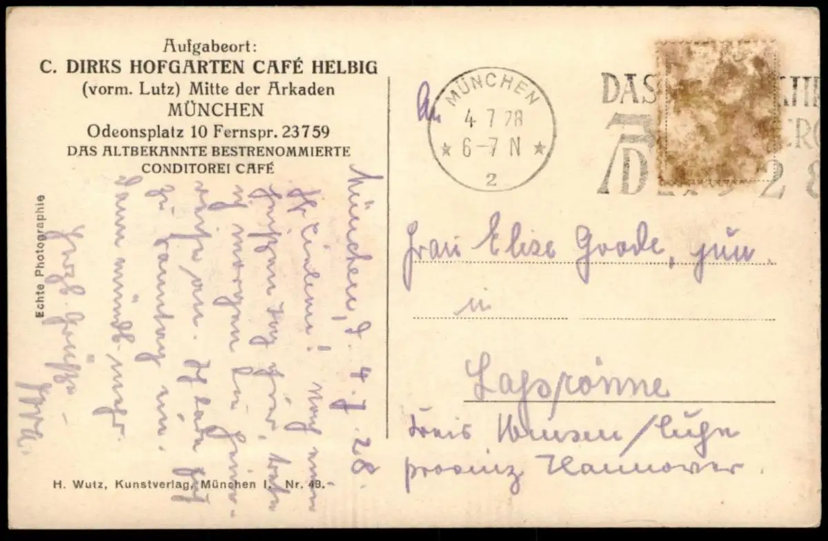 Verlag: H. Wutz, MünchenGelaufen: 04.07.1928 mit Stempel München nach Lassrönne Winsen Luhe, Briefmarke entferntErhaltung (s. Scan): gut / 916305