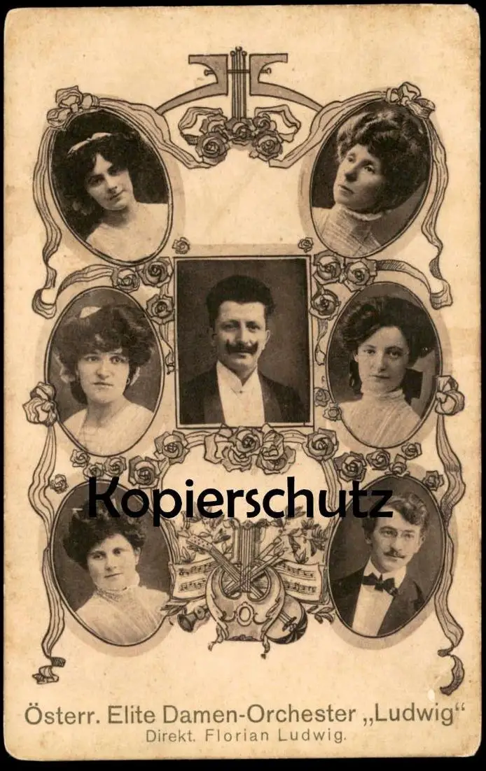 ALTE POSTKARTE ÖSTERREICHISCHES ELITE DAMEN ORCHESTER LUDWIG DIREKTOR FLORIAN LUDWIG
