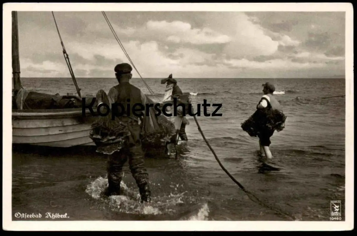 ALTE POSTKARTE OSTSEEBAD AHLBECK FISCHER MIT NETZEN