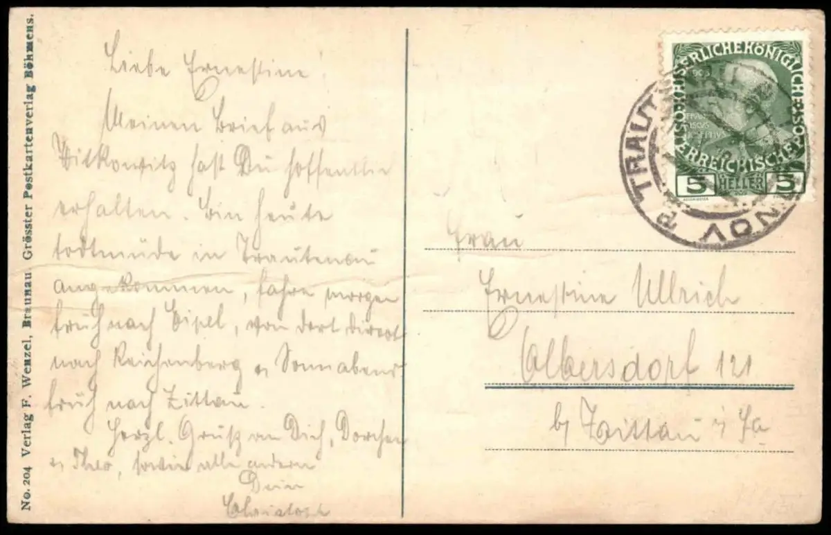 Gelaufen: 1910 mit Stempel Trautenau Trutnov nach Albersdorf bei ZittauErhaltung (s. Scan): gut / 915204