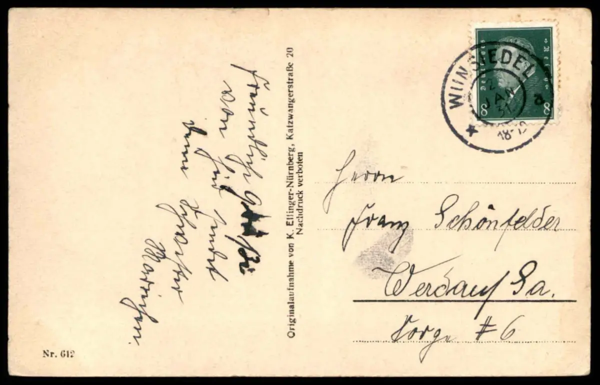 Gelaufen: 02.01.1931 mit Stempel Wunsiedel nach Werdau