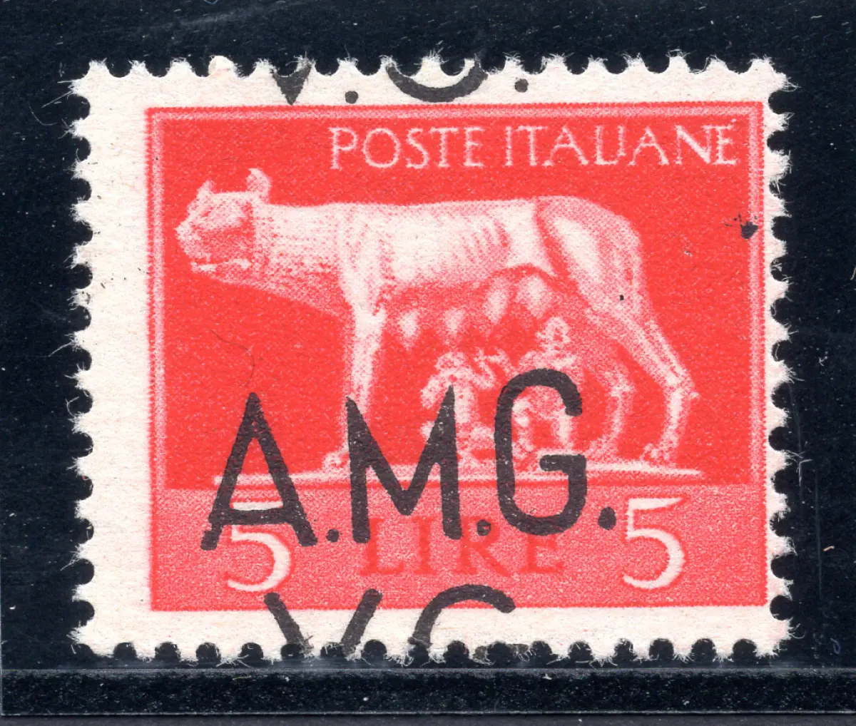 AMG. Sehr guter Zustand. - Lesen Sie 5 verschobene VG-Aufdrucke zu Pferd Vollgummi - AMG. Sehr guter Zustand. - Lire 5 n. 10hb stark vertikal verschobener Aufdruck VG zu Pferd - Ungewöhnlich Code 766/11