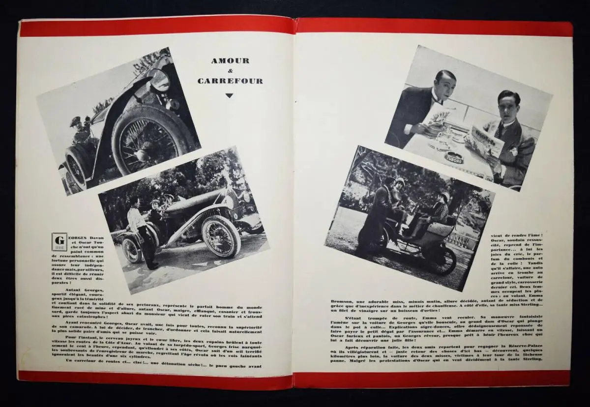 Film-Szenen. – Der dekorative Art Déco-Umschlag zeigt ein Automobil mit