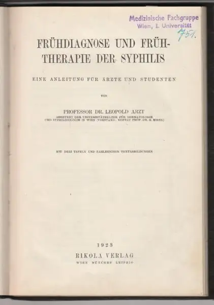 Bemerkungen: Leopold Arzt arbeitete am Pathologischen Institut und an der dermatologischen Klinik als Assistent bei Gustav Riehl. Er habilitierte sich in Hautkrankheiten und war Schriftleiter der "Wiener klinischen Wochenschrift".