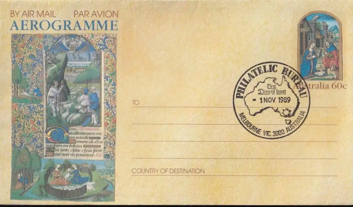 AUSTRALIEN 1989 Aerogramme Luftpostbrief Christmas 1989 FDC