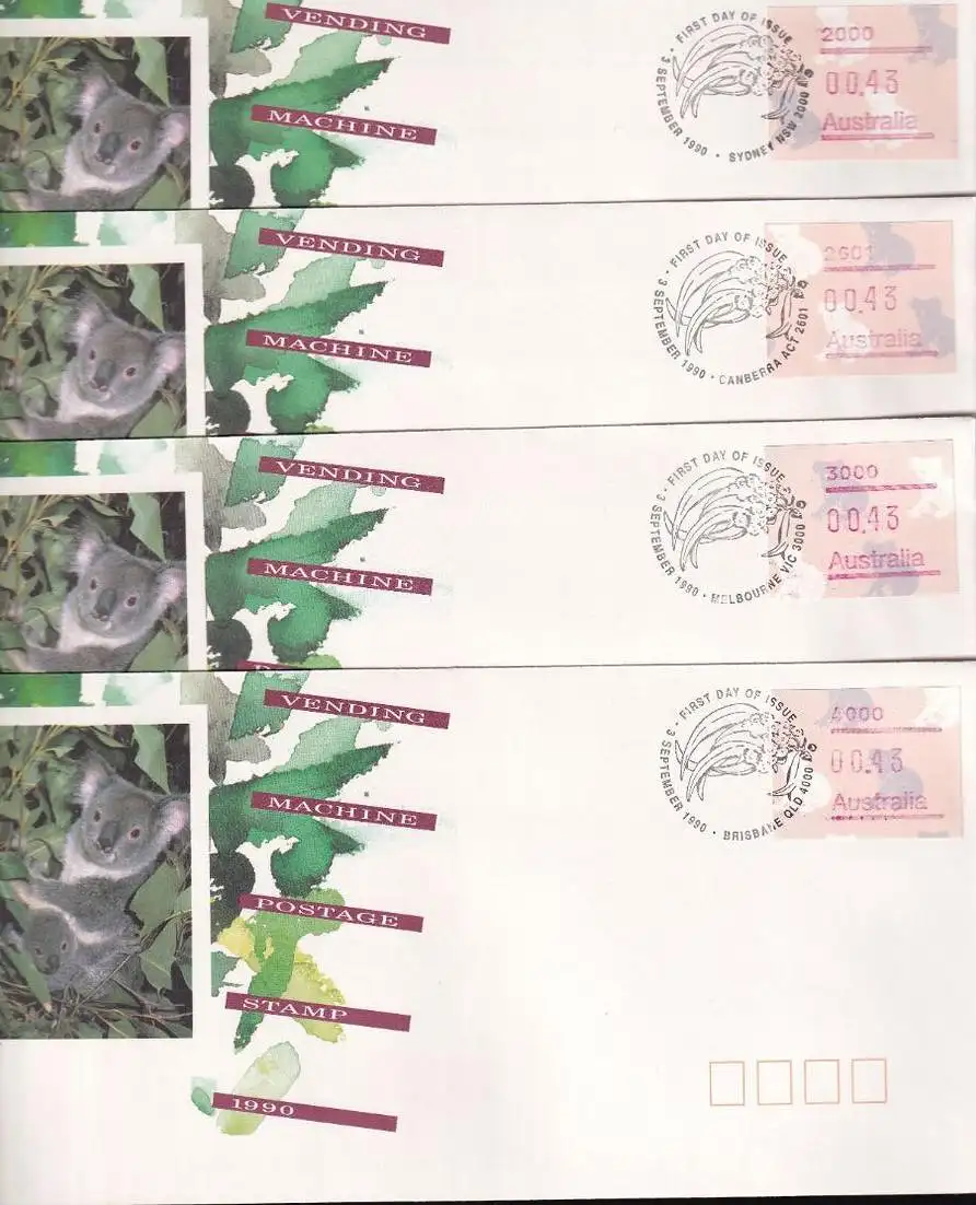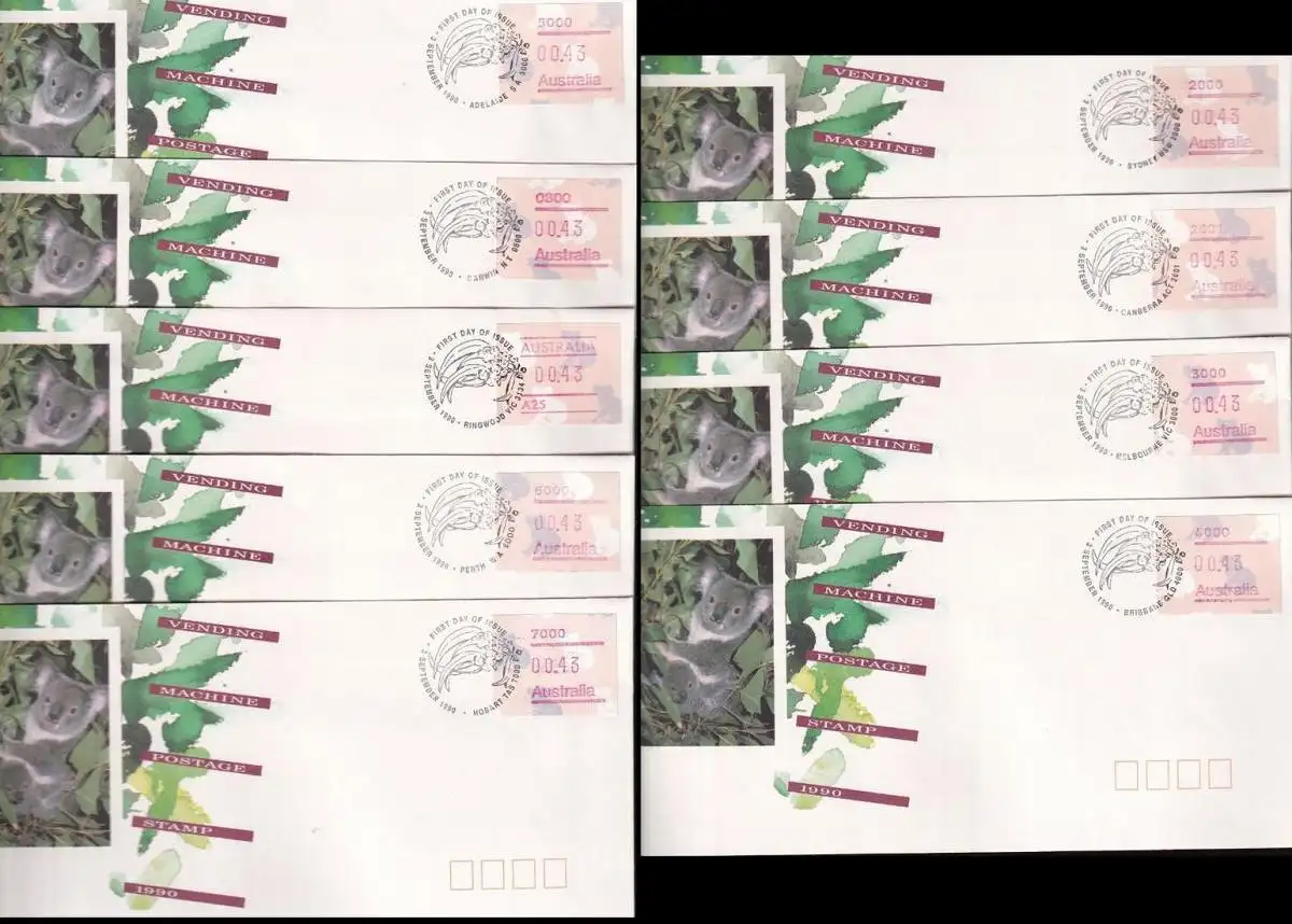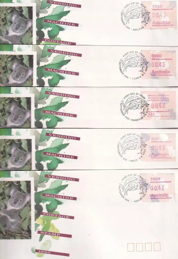 AUSTRALIEN 1990 Mi-Nr. ATM 17.1 - 17.8 Automatenmarken FDC