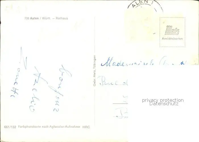 Aalen Rathaus Aalen postalisch gelaufen nach 1965 Erhaltung siehe scans Alte Ansichtskarte Postkarte WernPID4