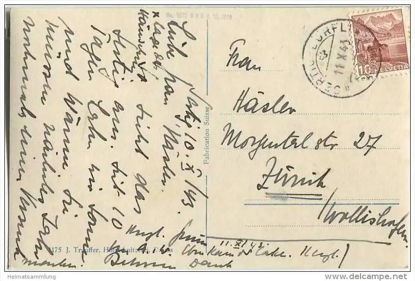 Abend im Sertigtal - Foto-AK - Verlag J. Trauffer Davos - Markierungskreuz bildseitig (E35782) gel. 1943