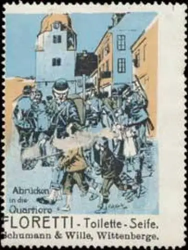 Militär-Serie, Floretti-Toilette-Seife, Größe/Zustand: 6x4 , leicht beschädigt, Original alte Reklamemarke die seinerzeit für die Werbung benutzt wurde