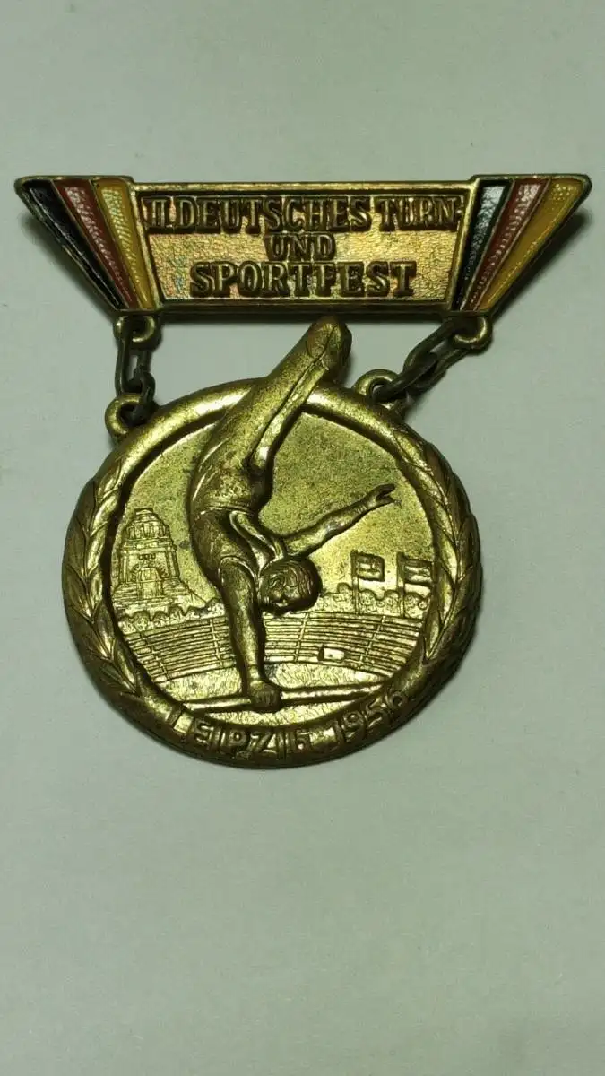 Abzeichen DDR - II. Deutsches Turn- und Sportfest 1956. Zustand: "Gebraucht". Versand mit Deutsche Post Brief Prio