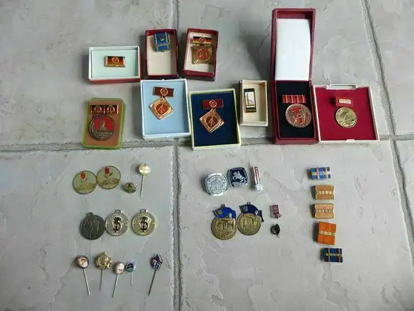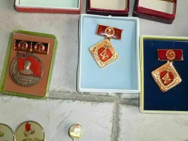 Biete Abzeichen aus der ehem. DDR Konvolut mit Orden + Abzeichen Nadeln DDR + Sowjetunion u.a. Verdienter Aktivist, DFJ, FDGB, Aktivist der Soz. Arbeit, Ernst Thälmann Medaille, Verdienste um DDR, Leningrad Abzeichen, Tag des Bergmannes der DDR, 5x FDJ, Anstecknadeln etc.Z.T. mit Box alle in sehr gutem gebrauchten Zustand mit üblichen Nutzung und altersgerechten Lagerungsspuren. Zustand und Umfang s. Fotos. Privatverkauf, keine Rücknahme, Garantie und Gewährleistung.