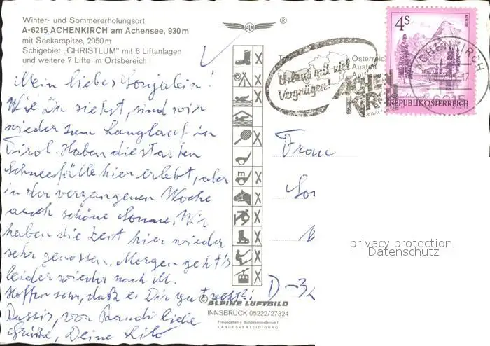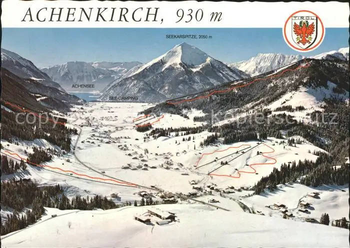Achenkirch Seekarspitze Schigebiet Christlum Fliegeraufnahme Achenkirch am Achensee postalisch gelaufen nach 1965 Erhaltung siehe scans Alte Ansichtskarte Postkarte Paoletti