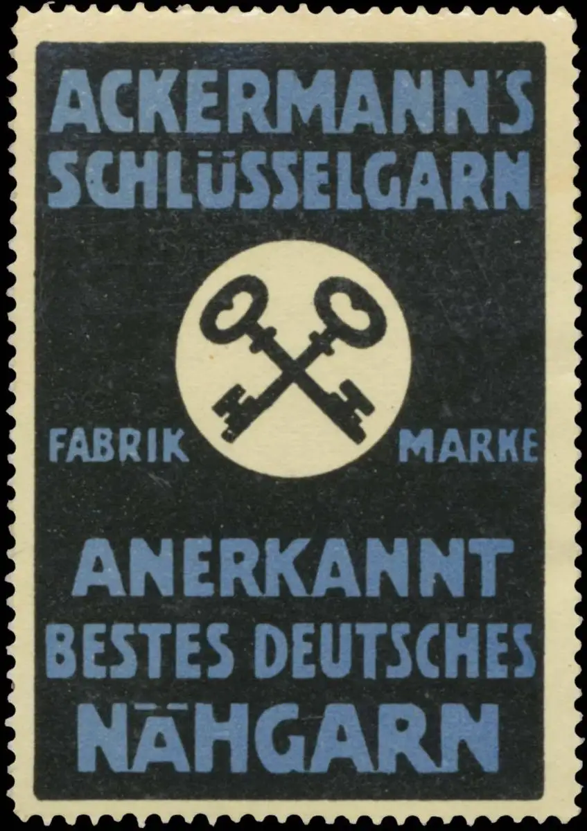 anerkannt bestes deutsches Nähgarn, Fabrikmarke, Größe/Zustand: 6x4 , guter Zustand, Original alte Reklamemarke die seinerzeit für die Werbung benutzt wurde