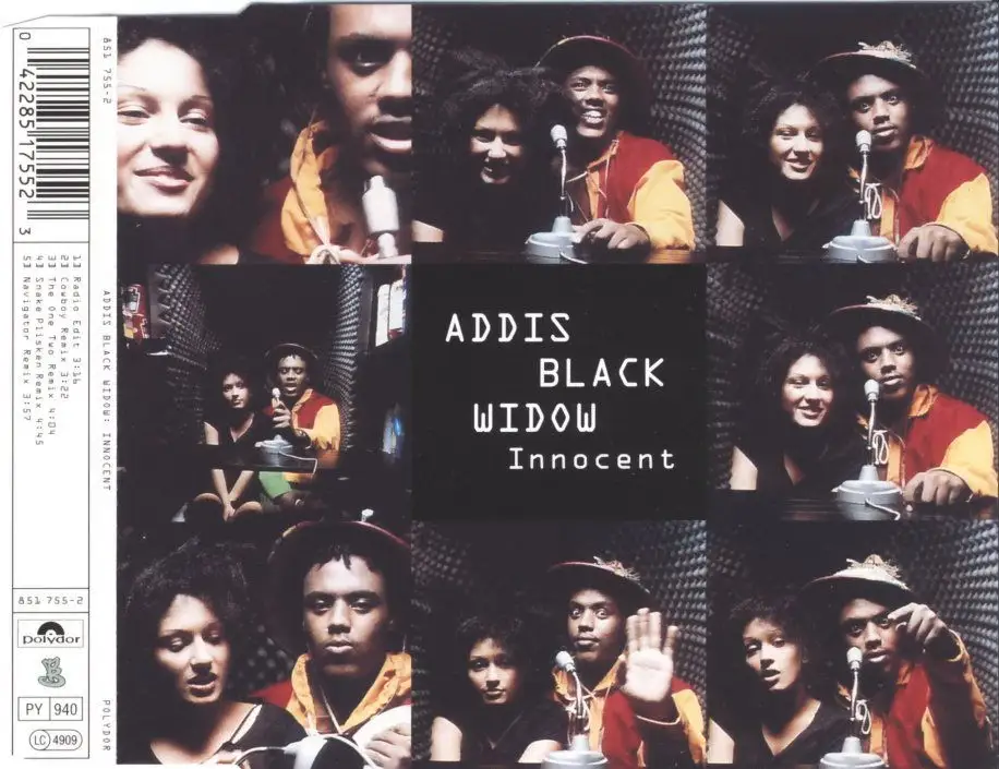 CD Single Addis Black Widow - Innocent, Zustand CD M- Hülle M-; Made in Germany 1995 Polydor 851 755-2, Tracks Radio Edit 3:00, Cowboy RMX 3:22, The One Two RMX 4:04, Snake Pliskin RMX 4:45, Navigator RMX 3:57