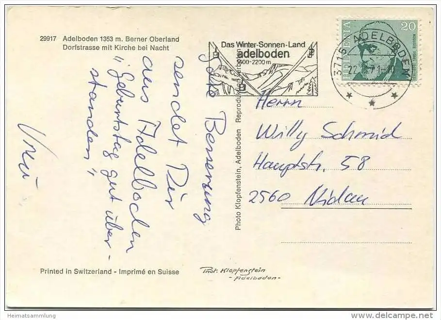 Adelboden - Dorfstrasse mit Kirche bei Nacht - AK Grossformat - Verlag Photo Klopfenstein Adelboden (G30786) gel. 1971