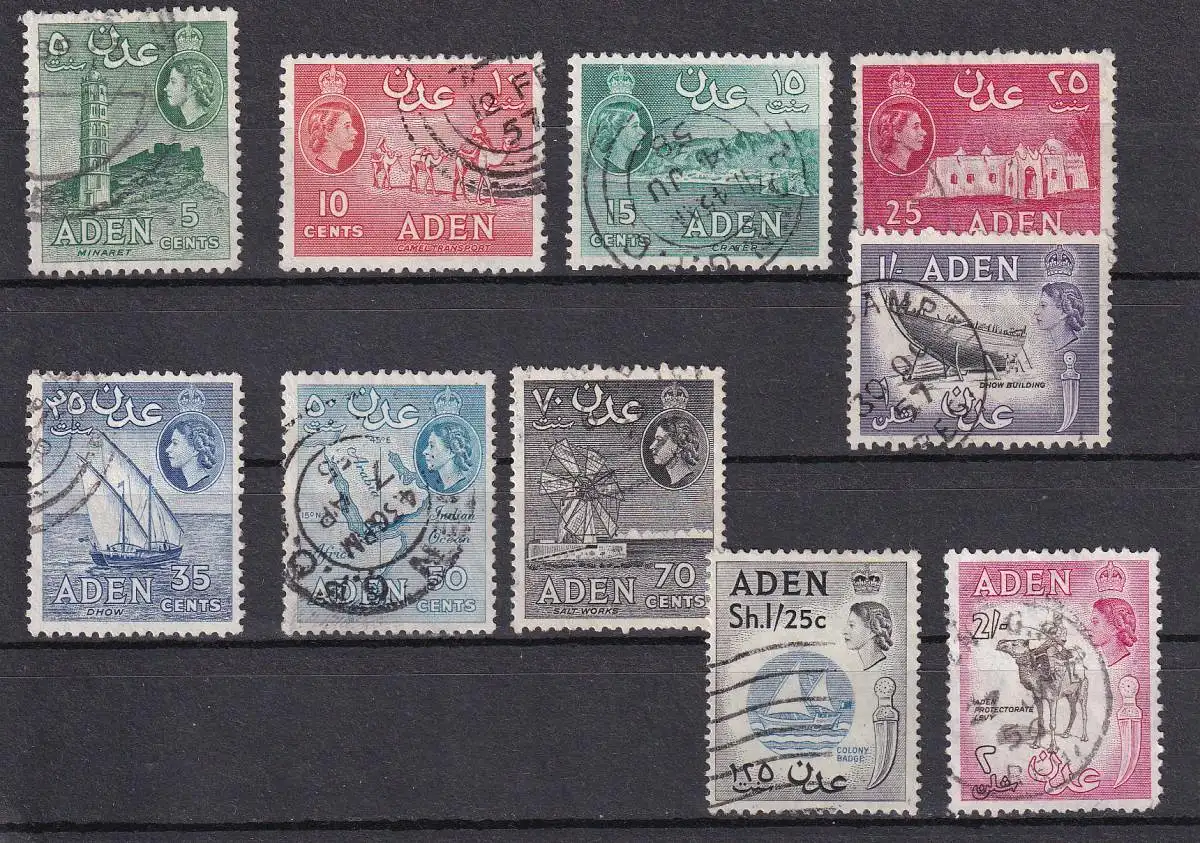 ADEN 1953 LOT FREIMARKEN QEII 5c-2/- / SG 48-56 GESTEMPELT / o