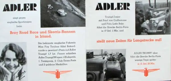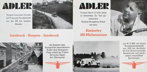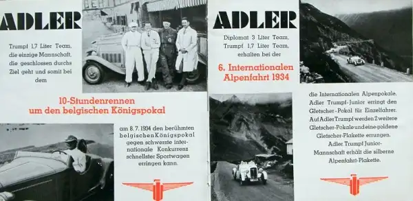 Adler Modellprogramm 1934 "Sieg auf Sieg" Automobilprospekt (1255)
